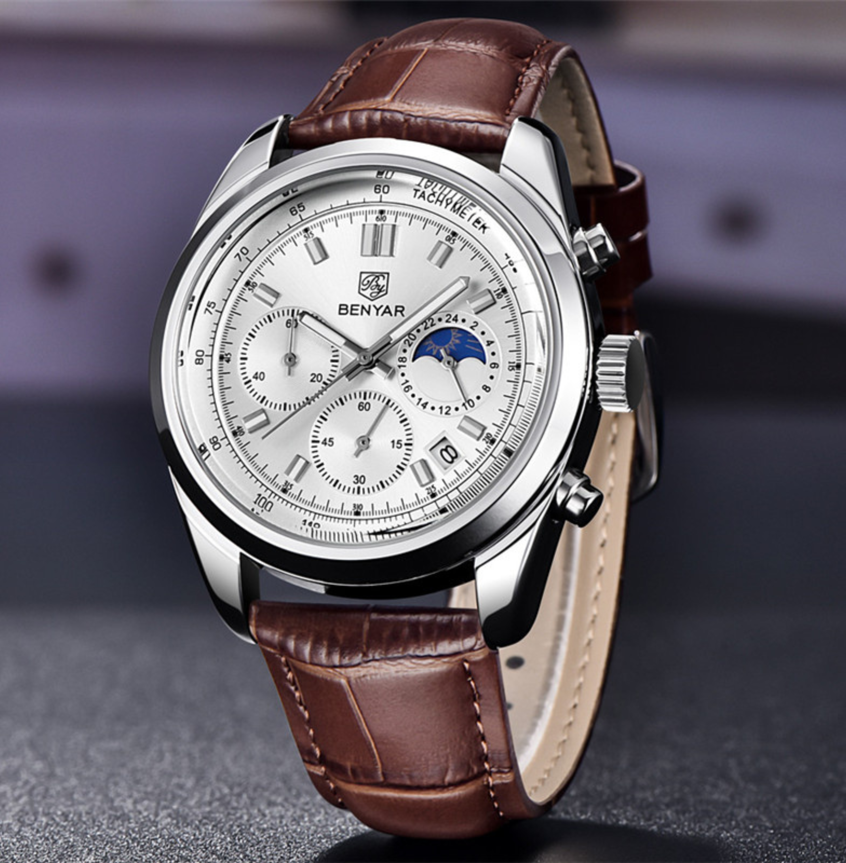 BENYAR BY-5193A Montre Homme Chronographe avec bracelet en cuir – Marron